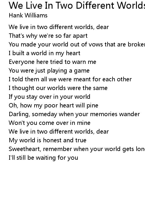 We live in two different worlds, dear |