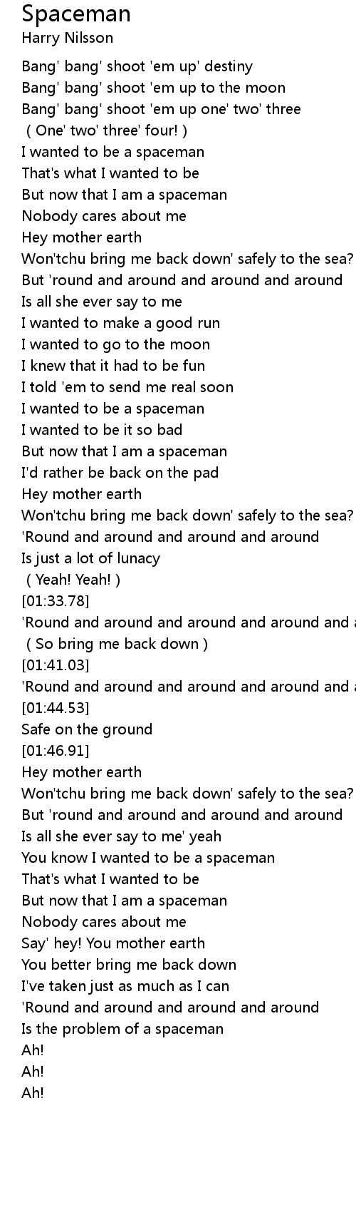 | [00:17.28] | Bang' bang' shoot 'em up to the moon |