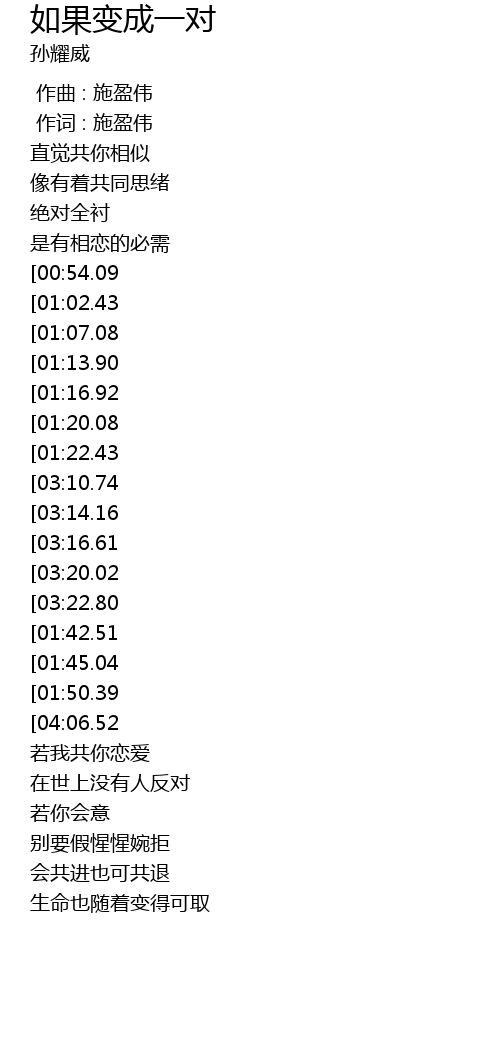| [03:33.88][03:10.74][01:27.61] | 如果变成一对 |