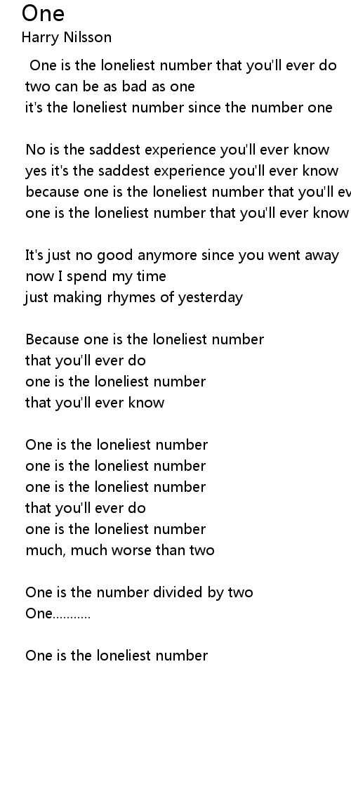 it's the loneliest number since the number one