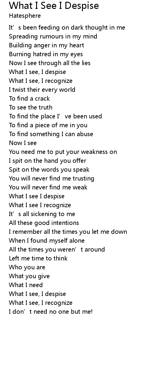 | Song | What I See I Despise |