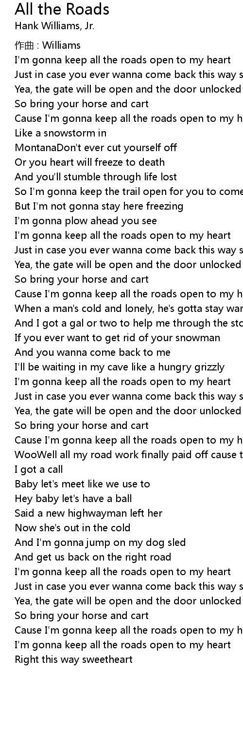 | Cause I'm gonna keep all the roads open to my heart, | |