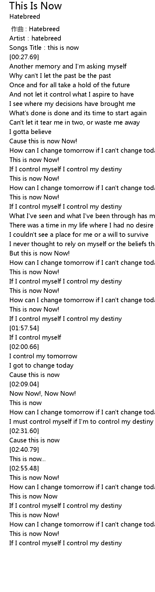 | [00:00.00] | zuò qǔ : Hatebreed |