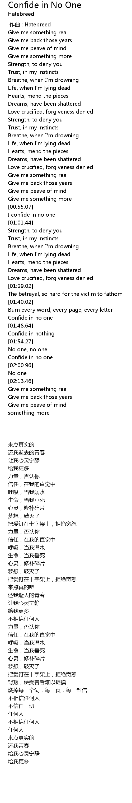 | [01:58.58] | Confide in no one |