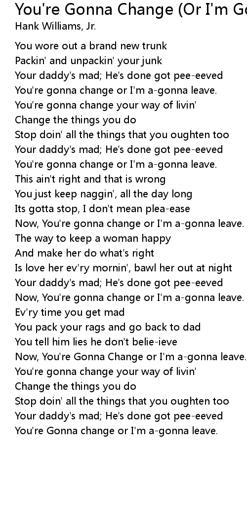 Now, You're Gonna Change or I'm a-gonna leave. |