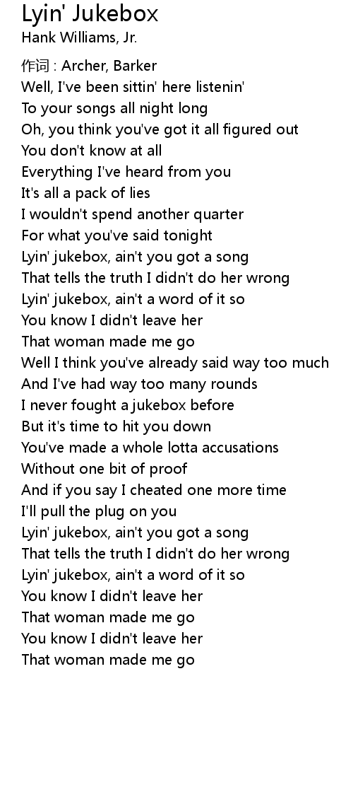 | Lyin' jukebox, ain' t you got a song | |