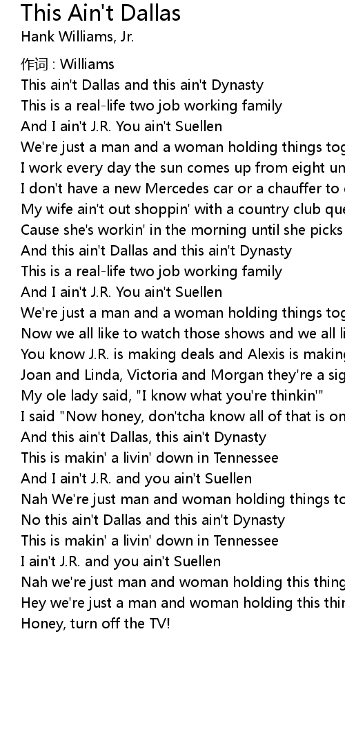 | And this ain' t Dallas and this ain' t Dynasty | |