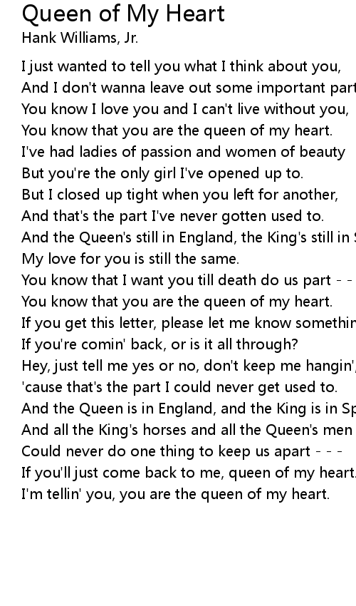 You know that you are the queen of my heart. |