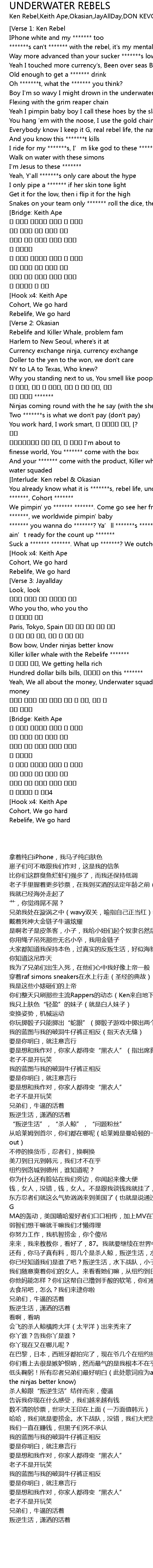 | [02:41.51] | You already know what it is *******s, rebel life, underwater squad, *******, Cohort ******* |