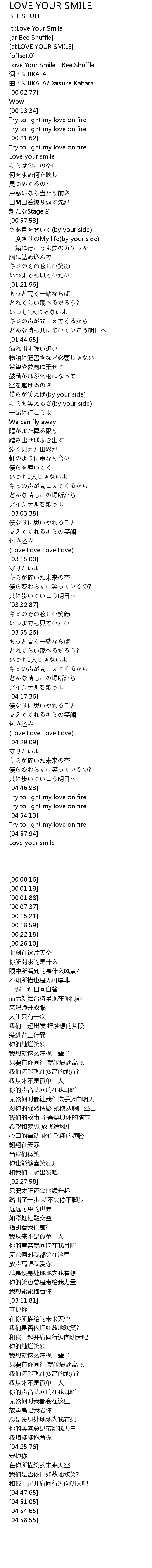 | [00:00.16] | Love Your Smile - Bee Shuffle |