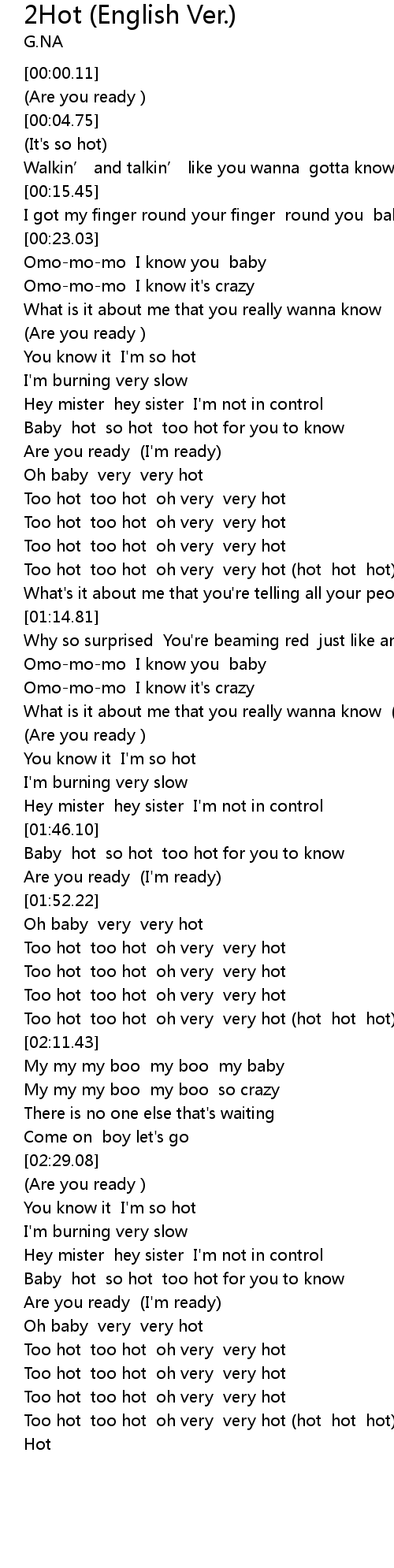 | [02:58.06] | Too hot too hot oh very very hot hot hot hot |