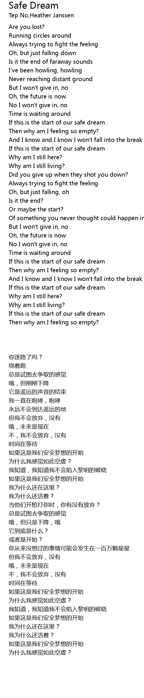 If this is the start of our safe dream |