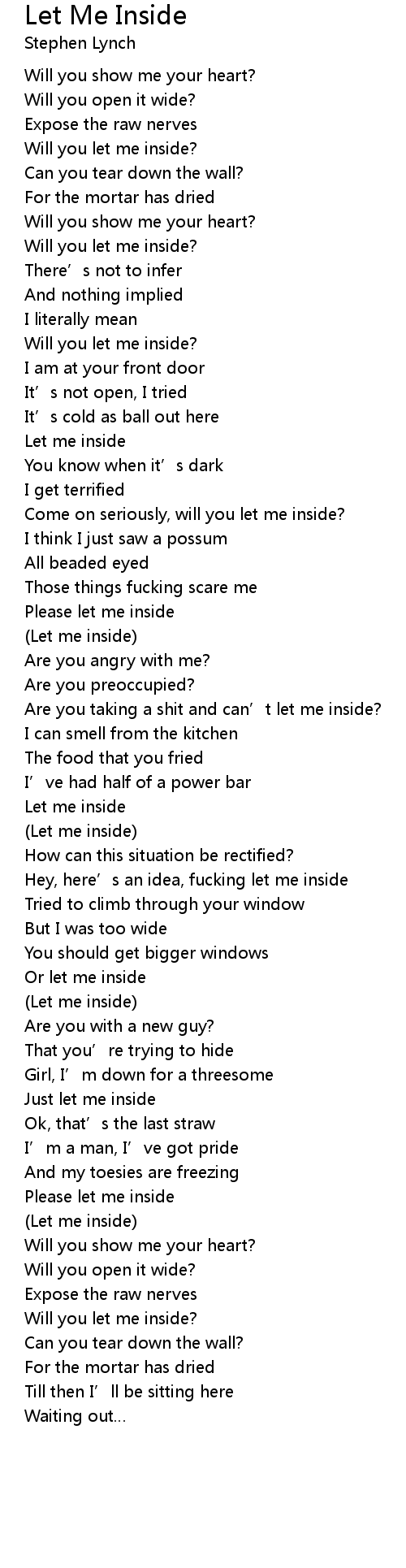 | Just let me inside | |