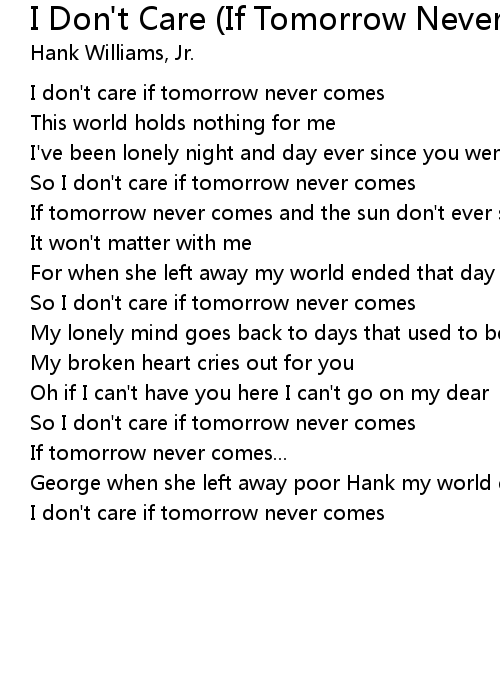I Don't Care (If Tomorrow Never Comes) Lyrics
