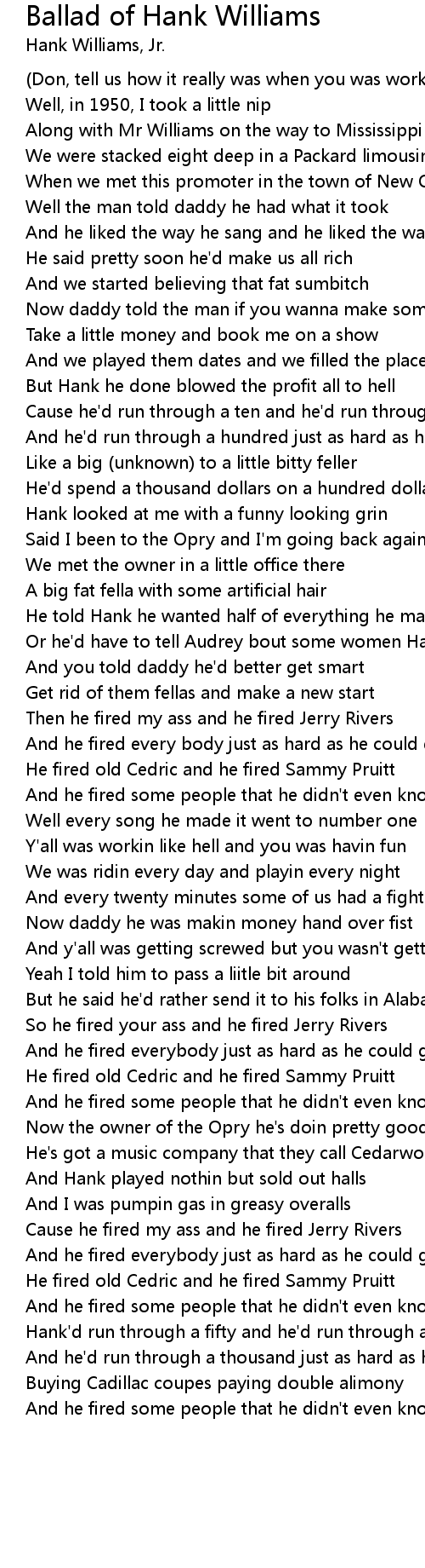 Or he'd have to tell Audrey bout some women Hank had laid |