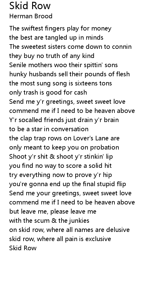 skid row, where all pain is exclusive |
