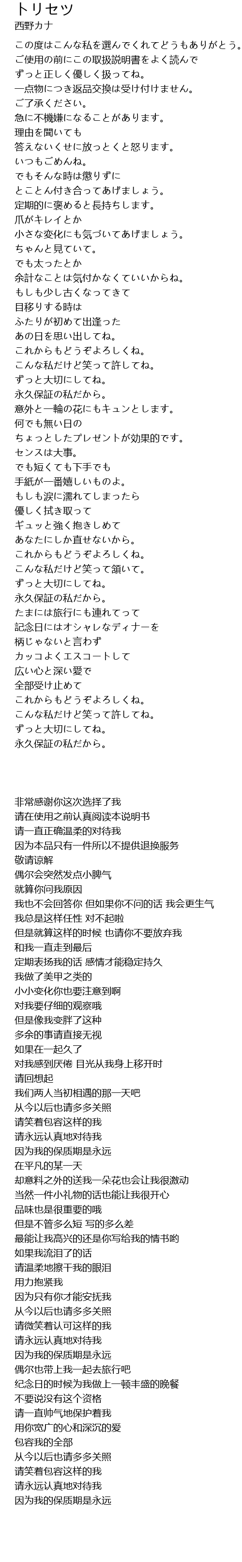 | [00:22.000] | ずっと正しく優しく扱ってね。 |