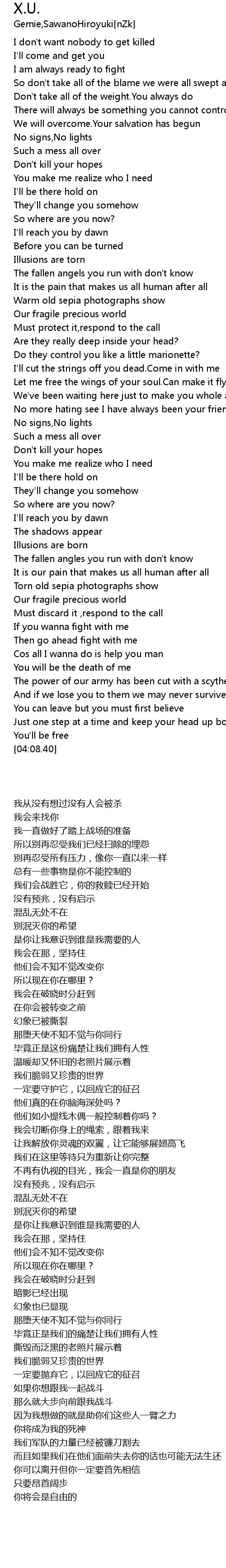 | [00:43.40] | We will overcome.Your salvation has begun |