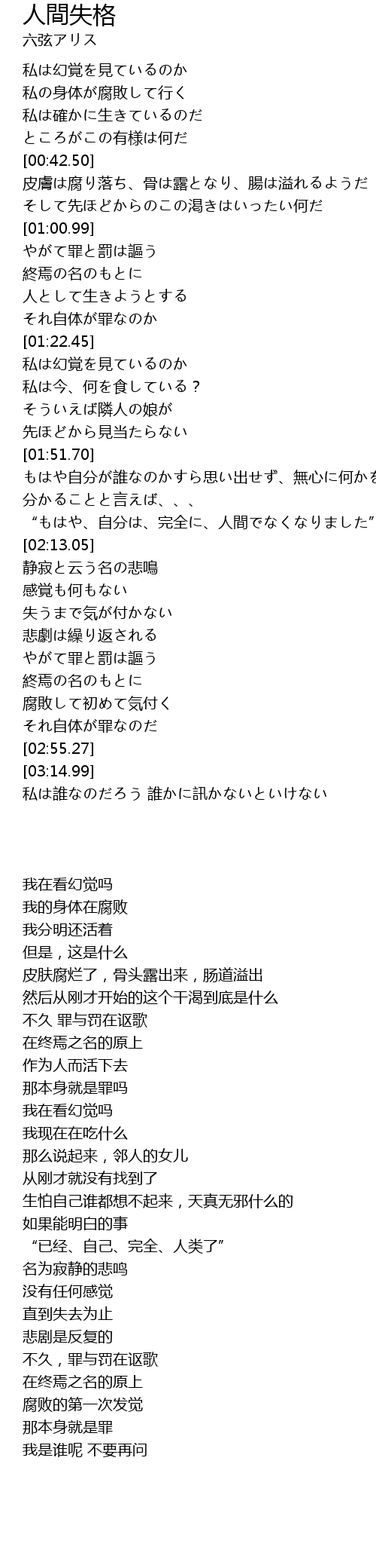 | [00:42.69] | 皮膚は腐り落ち、骨は露となり、腸は溢れるようだ |