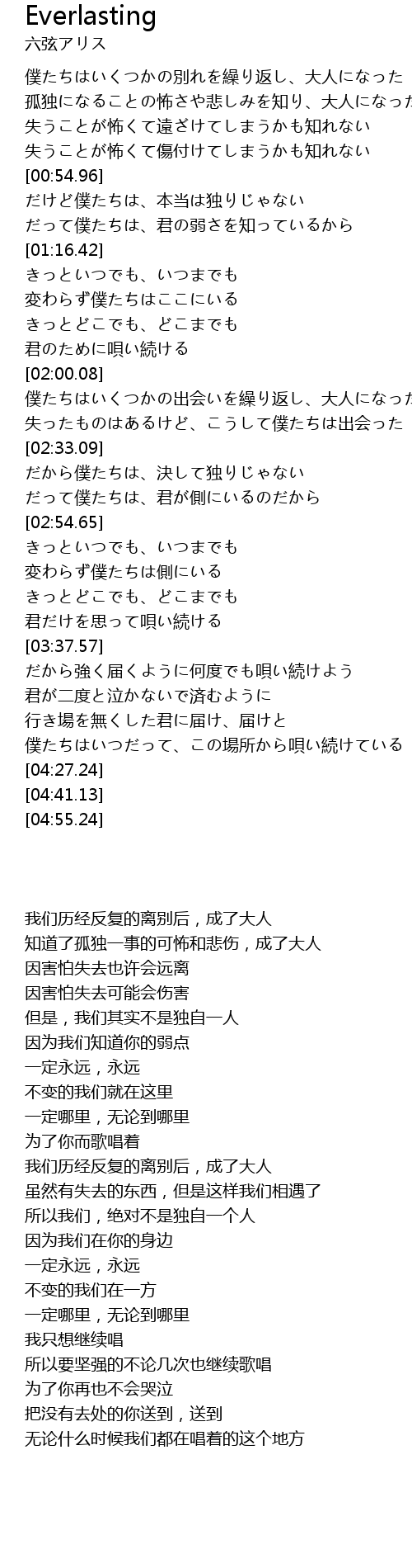 | [00:55.19] | だけど僕たちは、本当は独りじゃない |