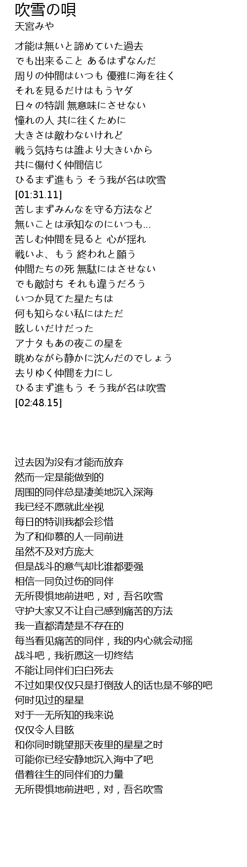 | [02:39.34] | ひるまず進もう そう我が名は吹雪 |