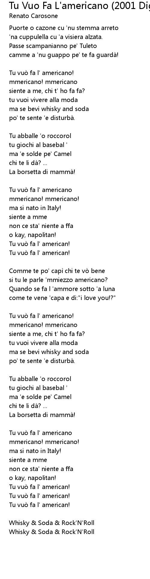 | Song | Tu Vuo Fa L'americano (2001 Digital Remaster) |