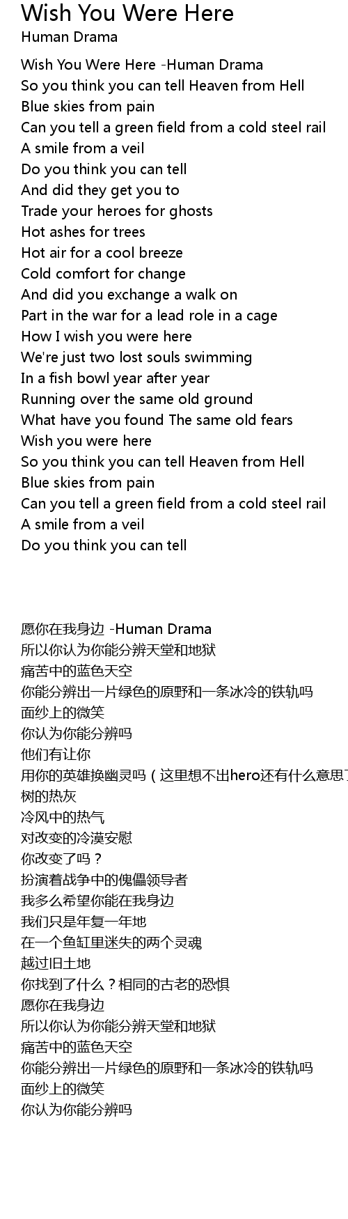 [00:00.260] Wish You Were Here -Human Drama