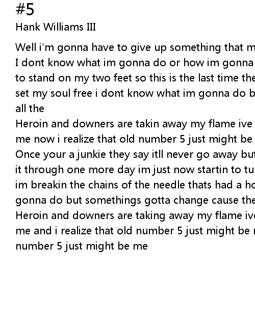 Heroin and downers are taking away my flame ive done had four friends die around me and i realize that old number 5 just might be me yea i realize that old number 5 just might be me