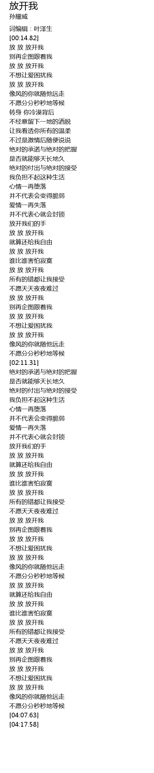 | [00:17.02] | fàng fàng fàng kāi wǒ |