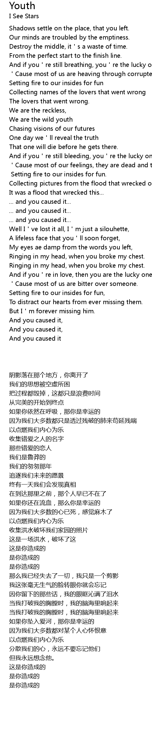 | Song | Youth |