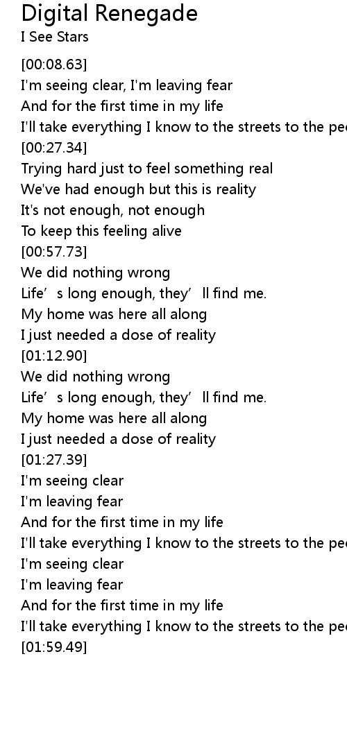 | [00:10.77] | I' m seeing clear, I' m leaving fear |