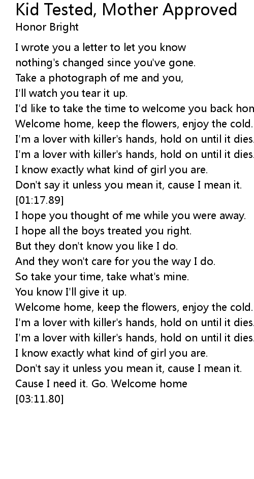 Cause I need it. Go. Welcome home |
