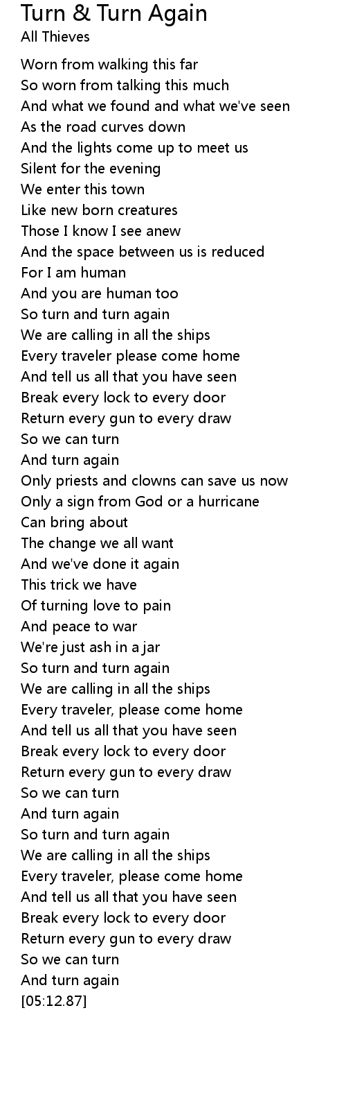 So turn and turn again |