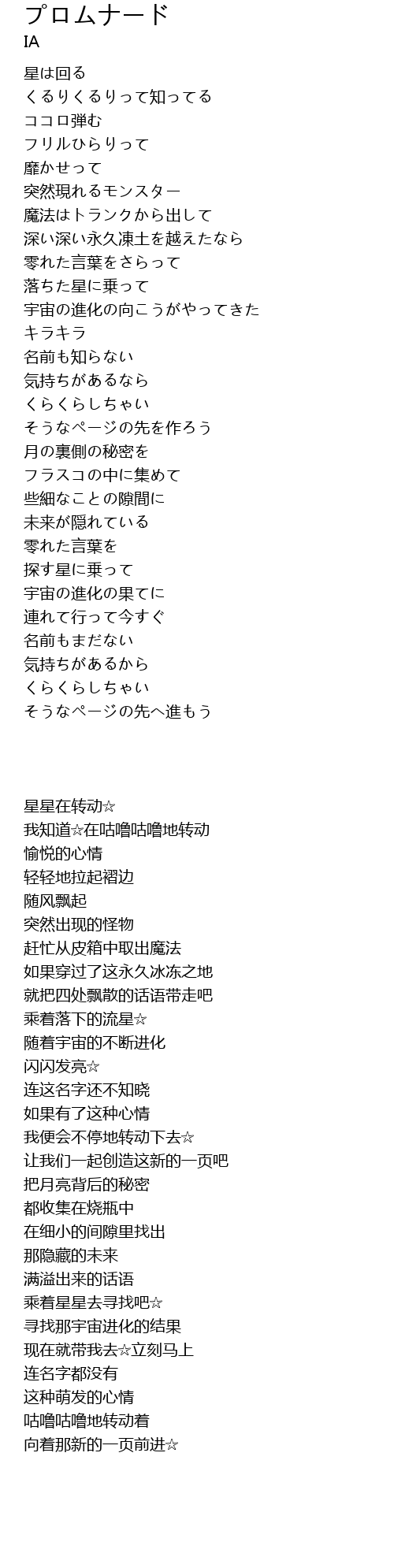 | [00:54.41] | 落ちた星に乗って |