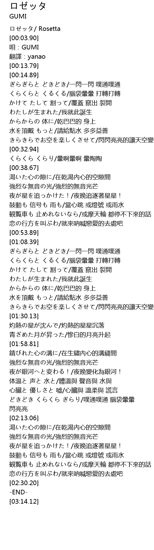 | [00:01.24] | ロゼッタ/ Rosetta |