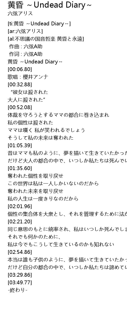 | [00:03.06] | 黄昏 ~Undead Diary~ |