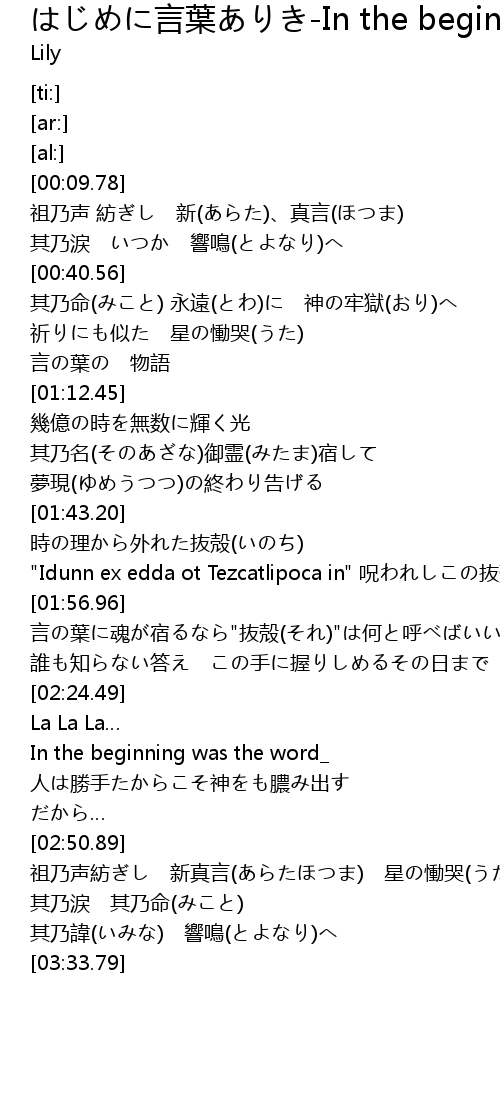 | [01:49.45] | "Idunn ex edda ot Tezcatlipoca in" 呪われしこの抜殻(いのち) |