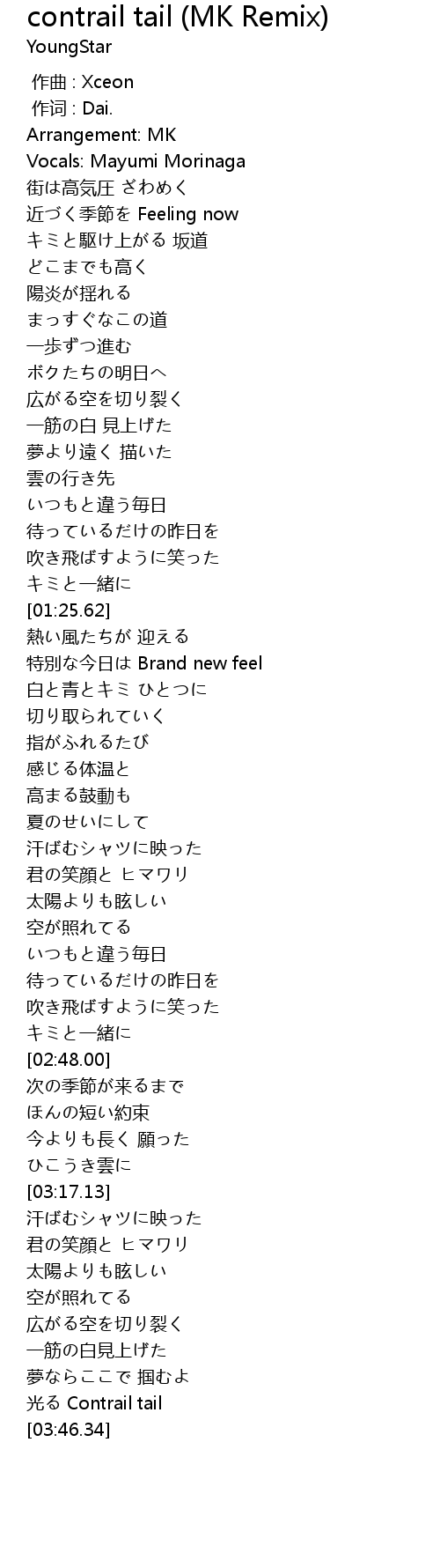 | [00:23.75] | Vocals: Mayumi Morinaga |