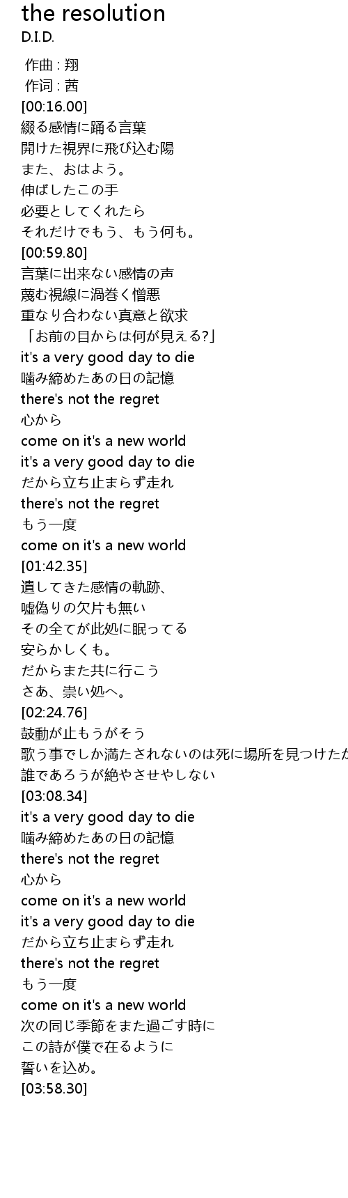 | [00:34.35] | 開けた視界に飛び込む陽 |