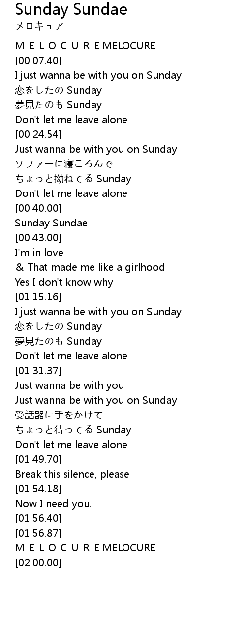 | [00:33.73] | ちょっと拗ねてる Sunday |
