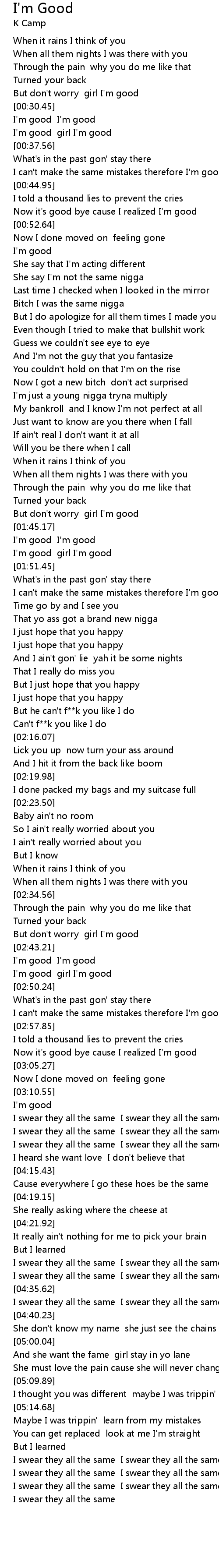 But don't worry girl I'm good |