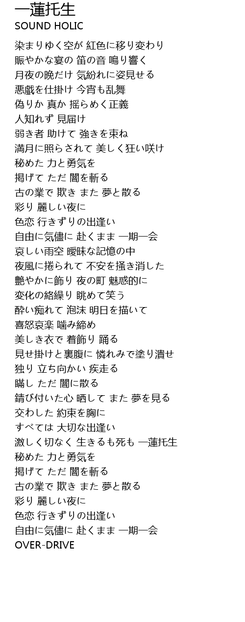 | [01:34.200] | 自由に気儘に 赴くまま 一期一会 |