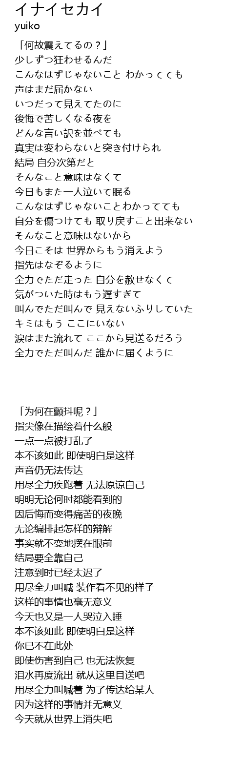 | Song | イナイセカイ |