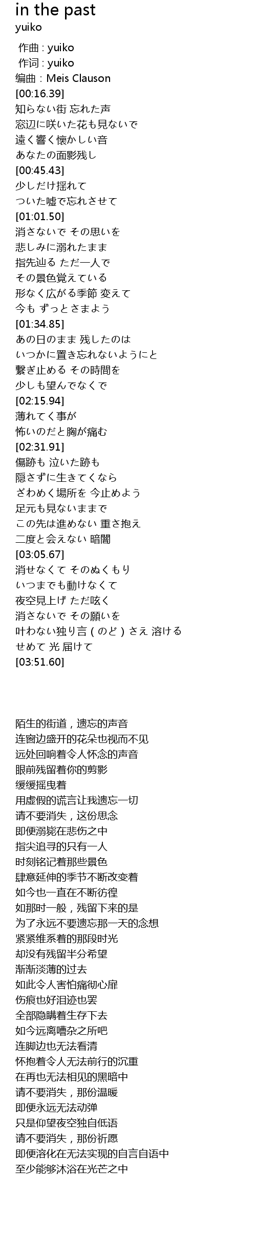 | [00:00.00] | zuò qǔ : yuiko |
