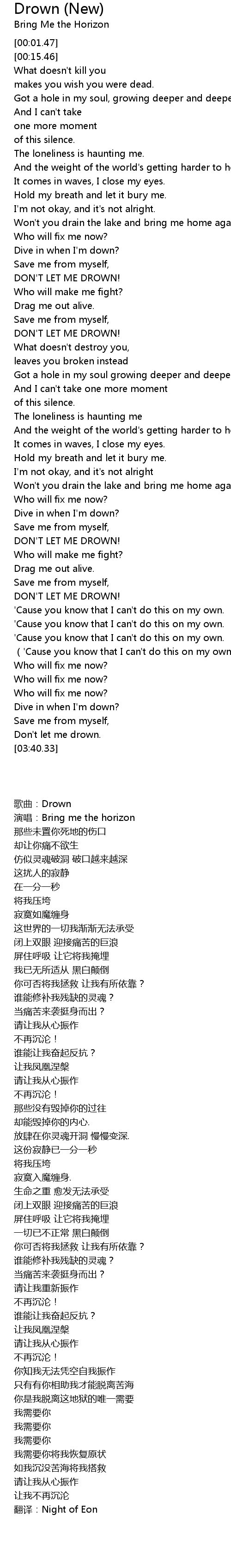 | [00:51.04] | Won' t you drain the lake and bring me home again? |