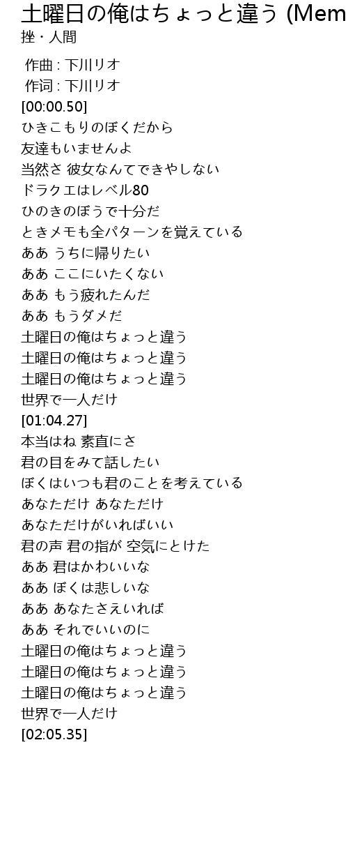 | [00:57.28] | 土曜日の俺はちょっと違う |