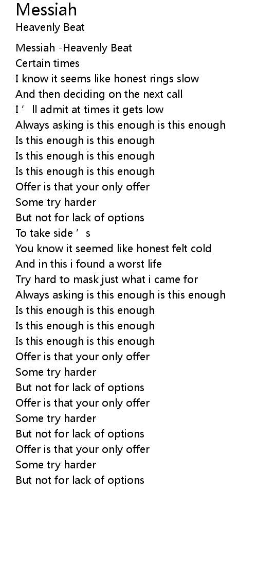 | [00:16.291] | Messiah Heavenly Beat |