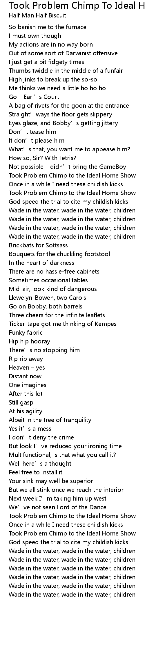 | Song | Took Problem Chimp To Ideal Home Show |