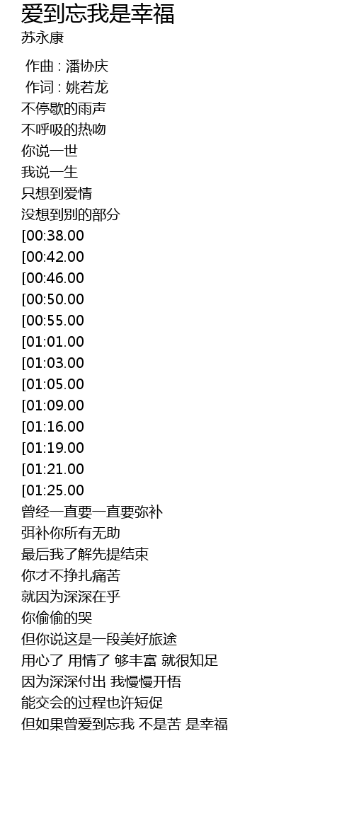 | [02:35.00][01:25.00] | 但如果曾爱到忘我 不是苦 是幸福 |