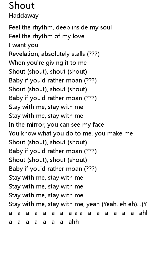 | Stay with me, stay with me, yeah (Yeah, eh eh)...(Yeah, eh eh) a--a--a--a--a--a--a--a-a a--a--a--a--a--a--a--ahh a--a--a--a--a--a--a--a-a a--a--a--a--a--a--a--ahh |